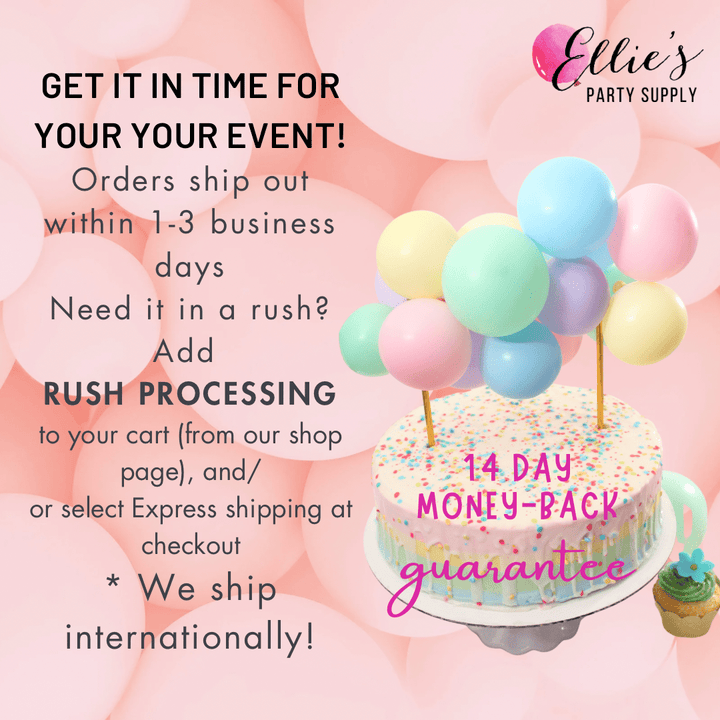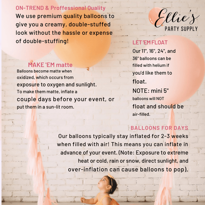 🎈 Premium latex balloons (sizes 5", 11", and 16")